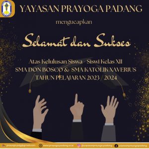 Yayasan Prayoga Padang mengucapkan selamat dan sukses kepada SMA Don Bosco Padang dan SMAK Xaverius Padang atas kelulusan siswa-siswi kelas XII Tahun Pelajaran 2023-2024