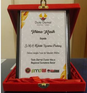 Kegiatan ini dipelopori oleh tim Duta Damai Sumatera Barat bekerja sama dengan SMA Katolik Xaverius Padang. Kegiatan ini bertujuan untuk memberi pemahaman dan pengertian terhadap pentingnya perdamaian, dan membuat kita menjadi pelopor perdamaian, baik di lingkungan sekolah, masyarakat, tanpa membedakan suku, agama, ras, ataupun golongan. Kiranya kegiatan ini dapat bermanfaat bagi siswa siswi SMA Katolik Xaverius Padang